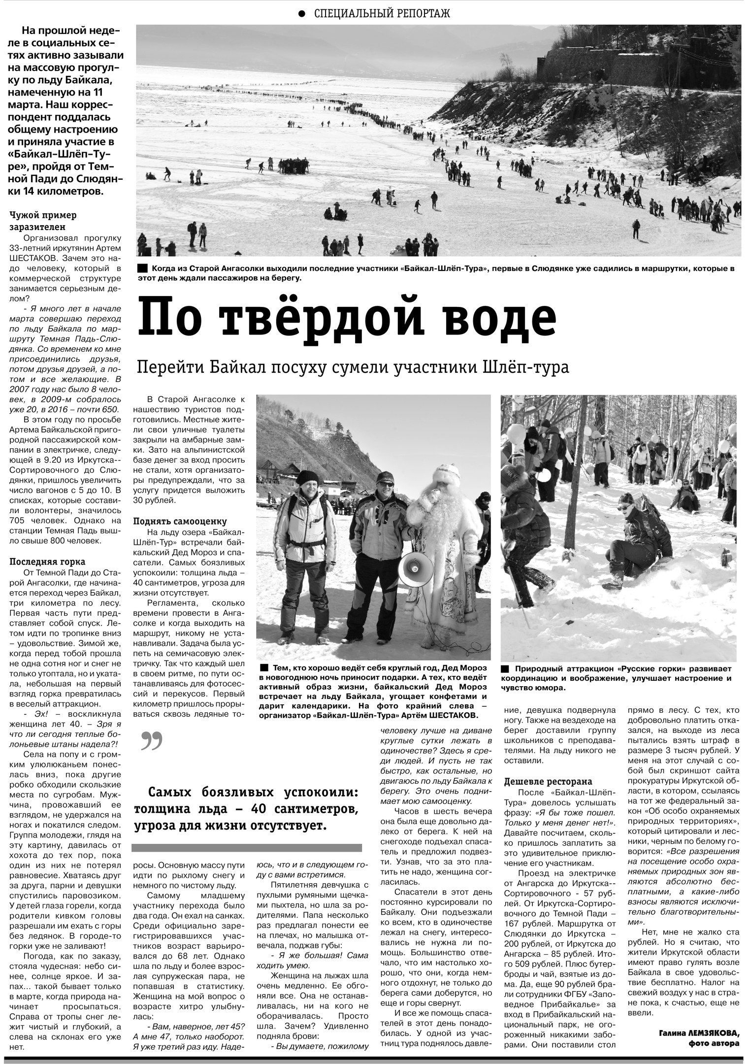 • Областная газета «Массовый переход по льду «БайкалШлепТур» пройдет 9 марта»